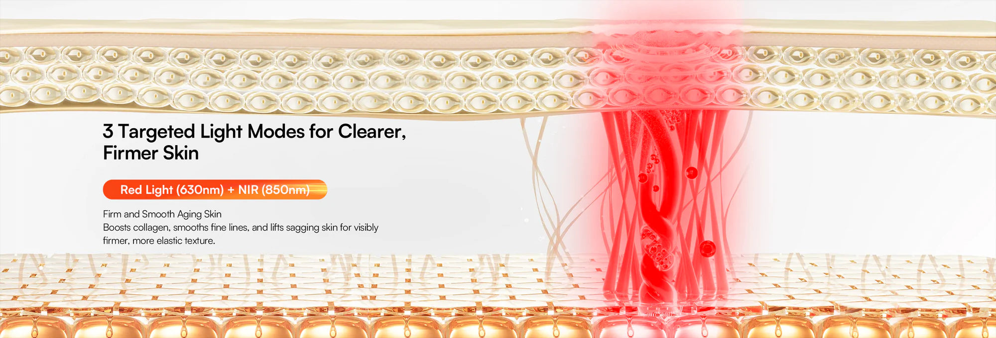 Not all red light is created equal. INIA uses the golden 850nm NIR wavelength—clinically shown to reach deeper layers for real anti-aging results.