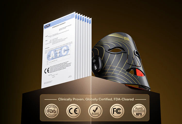 INIA GLOW Wireless is backed by trusted certifications including FDA, CE, RoHS, FCC, and REACH—ensuring medical-grade safety and performance in your daily skincare.